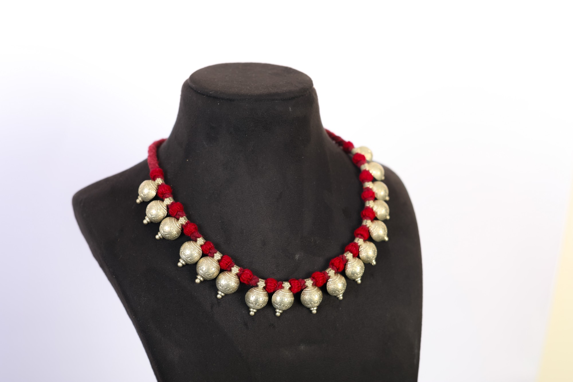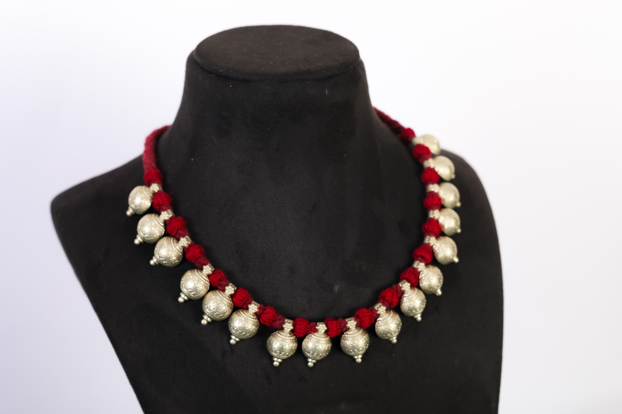 Elegant maroon thread base with rhythmic bead design