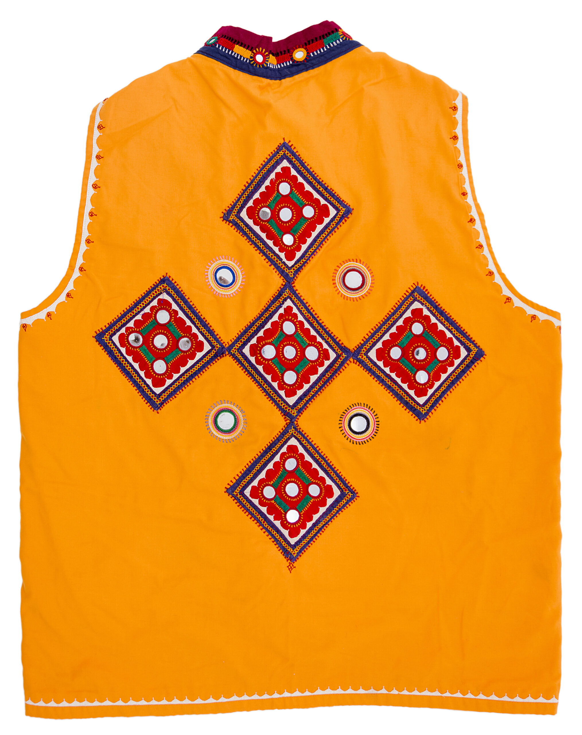 • Bright yellow base with multicolor embroidery